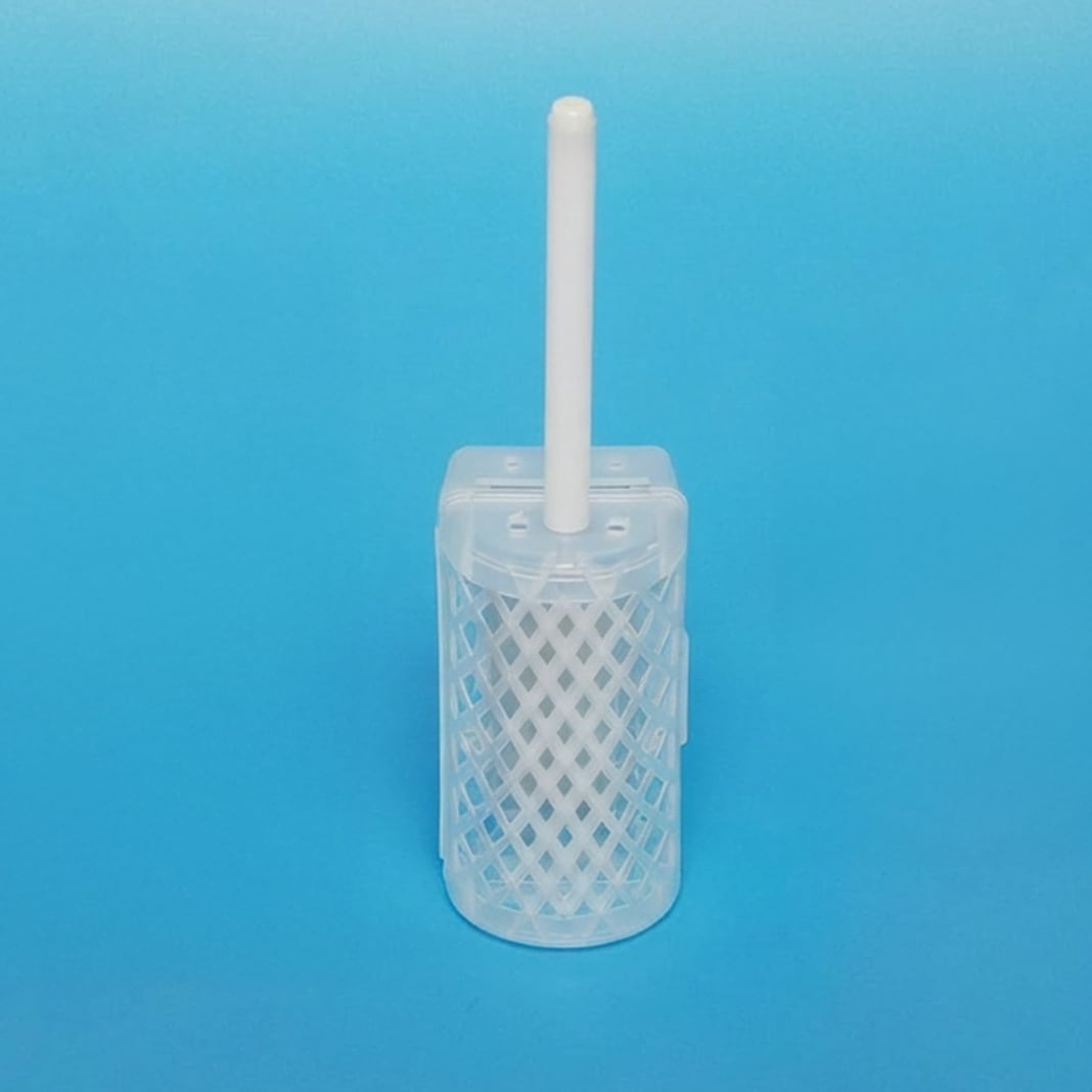 水素発生剤を入れて使用するための専用カゴです。フタ付きのカゴ本体と芯棒の2点がセットになっています。